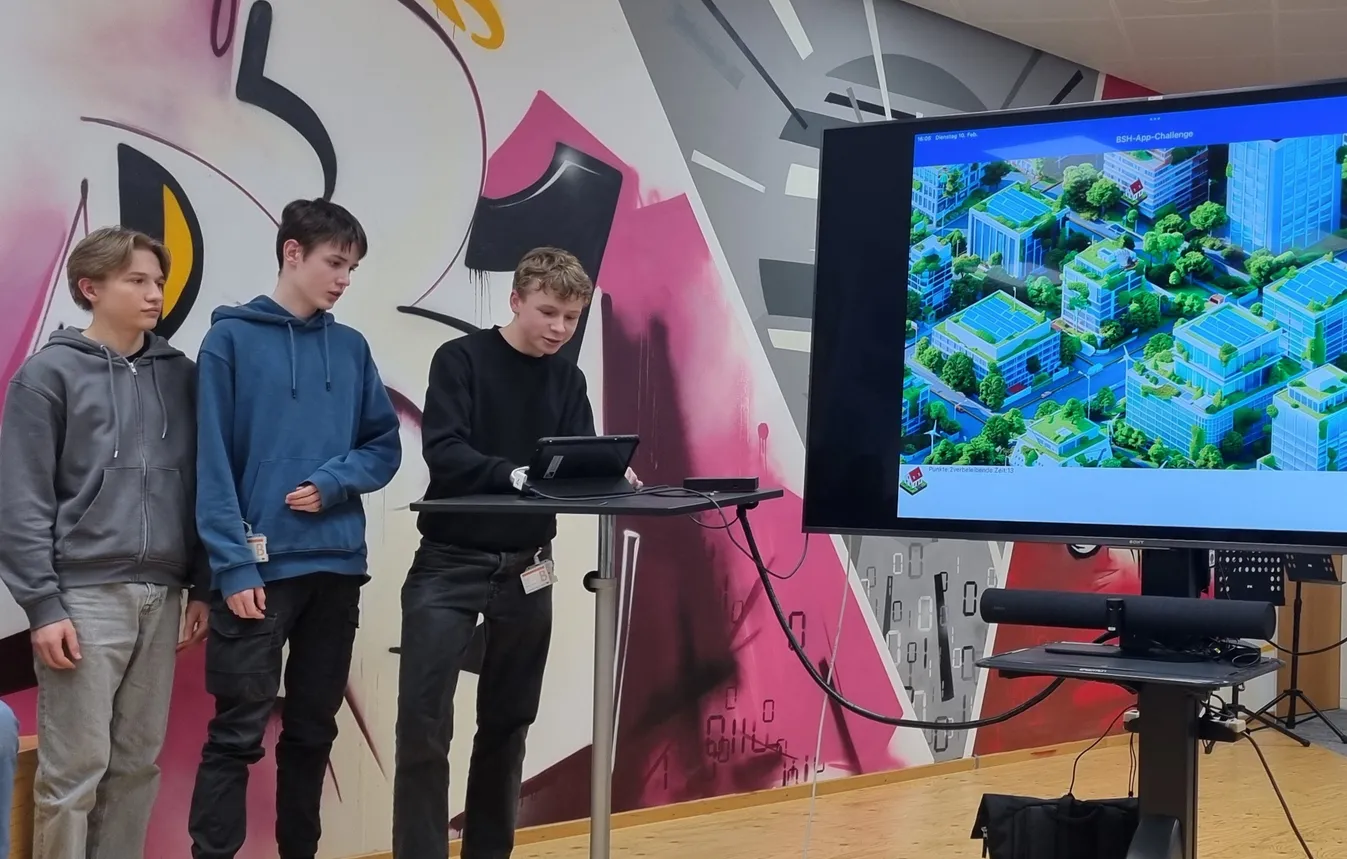 Hier wurde ohne Vorkenntnisse den ganzen Tag fleißig gecodet und innerhalb weniger Stunden eine App entwickelt. Zielvorgabe war ein Spiel, bei dem in einem Wimmelbild verschiedene Gegenstände gefunden werden müssen. Auch wenn es dieses Mal nicht auf's Treppchen gereicht hat, hat sich die Fahrt für alle gelohnt und wir werden nächstes Jahr wieder dabei sein! Neben der Programmierung war aber auch der Austausch wertvoll, sowohl zwischen den Schülerinnen und Schülern als auch unter den begleitenden Lehrkräften. Eine spannende Erfahrung, die Lust auf mehr macht!